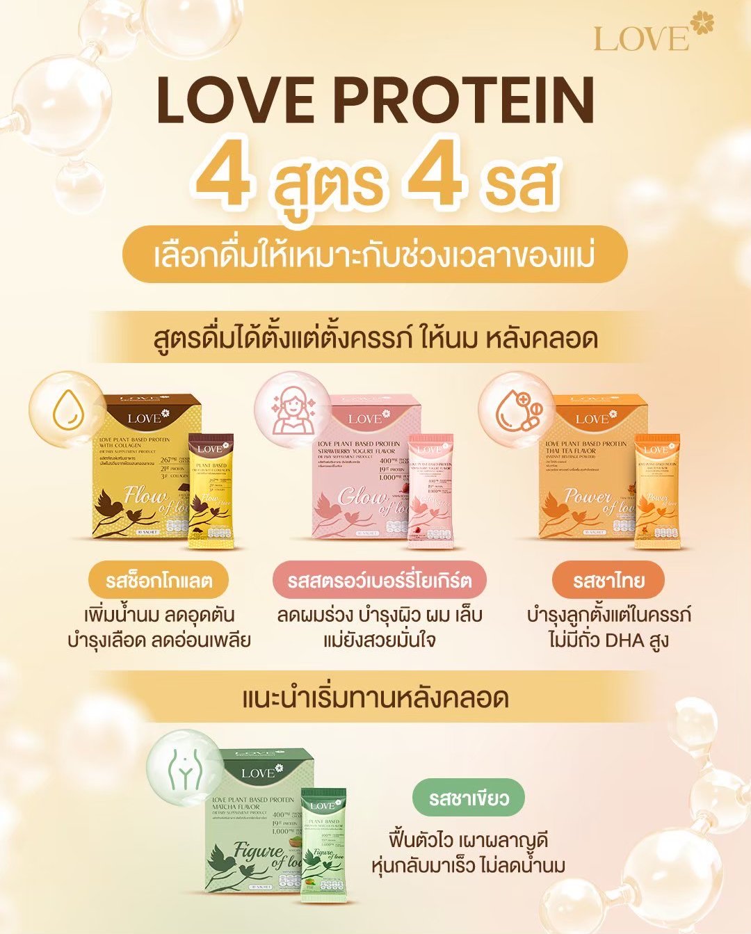 Love Protein โปรตีนคุณแม่สูตรแพทย์ออกแบบมาโดยแพทย์ผู้เชี่ยวชาญที่เข้าใจความต้องการของคุณแม่อย่างแท้จริง Love Protein เป็นตัวแทนความรักจากแม่ เพราะแม่ทุกคนย่อมต้องการให้ลูกน้อยเติบโตอย่างแข็งแรงตั้งแต่ยังอยู่ในท้อง และมีน้ำนมที่มีคุณภาพให้ลูกน้อยได้อย่างต่อเนื่อง